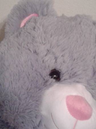 Three NEW with tags very large seated stuffed bears. complete with pink accents red ties with hearts and gray body. These adorable bears are really excellent to give as a gift for your Valentine, Birthday, Christmas or to remind that special someone just how much you love them. $5 each.