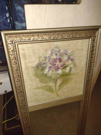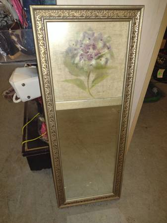 Nice decorative picture with mirror in one. Measures 27in t by 10in w.