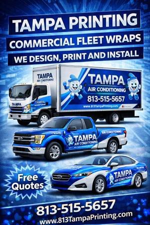 Looking for professional design, printing and installation of your van, truck or trailer? Tampa Printing, located in the heart of Riverview has been the place to go for the past 15 years! Stop by our showroom Monday through Friday from 9-5 to discuss and review options for your next project!
