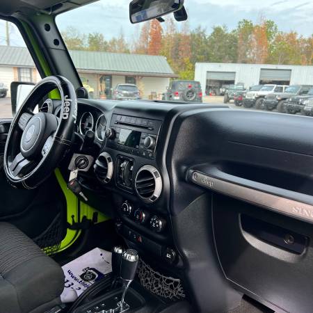 Gecko - that's the awesome color on this great looking 4 door Jeep Wrangler with a little lift and fuel wheels.