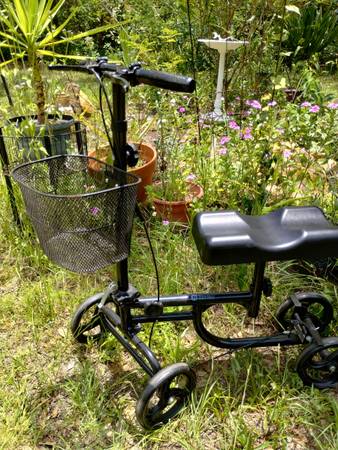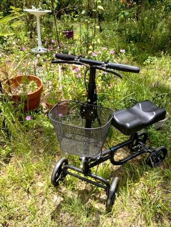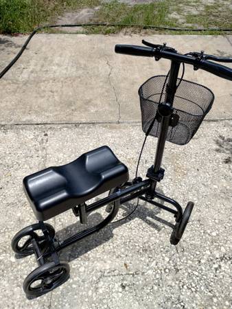 Knee Walker by Body Med. Used for ease in mobility when recovering from foot and ankle injury. Foldable,brakes,basket.70%off. Excellent condition. $20. .