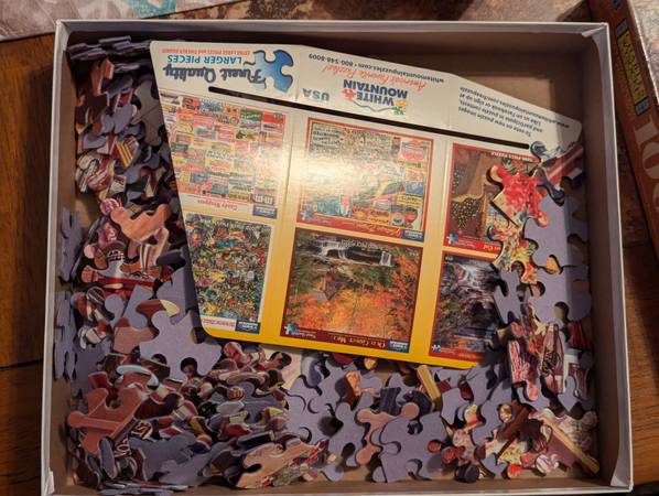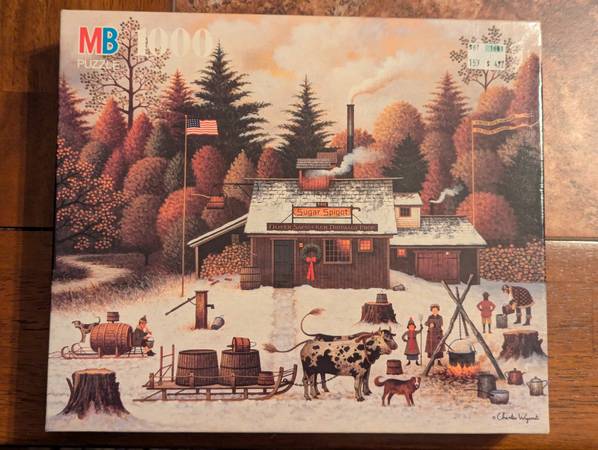 Charles Wysocki 1000-Piece Puzzle, The Vermont Rock Maple Tree Tappers Year 1995 - It is used, but the puzzle is in good condition. The box has some imperfections you can see in the pictures.