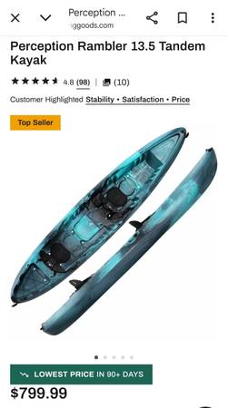 Excellent Condition Tandem Kayak. The Kayak Currently Retails for $799 at Dicks Sporting Goods Without all the Additional Accessories.
