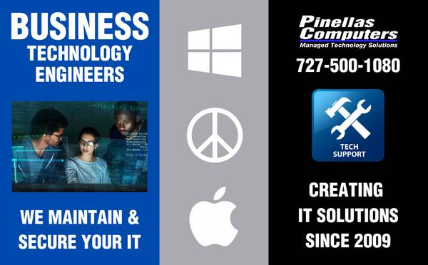 Looking for RELIABLE and QUALIFIED Business IT Support? Our team of IT ENGINEERS work LOCALLY in Pinellas County, FL. Proactive Managed IT Services provided to 1,000+ Local Businesses. Service...