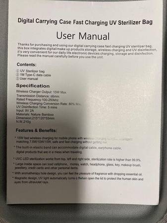 (BRAND NEW) SHIPS THROUGH FACEBOOK FOR $5.75. OEM Portable Wireless Fast Charger Smartphone Sterilizer Box, $79.95 MSRP UV Sterilizer bag 1M Type-cdata cable.Wireless charger output 15W max UV...