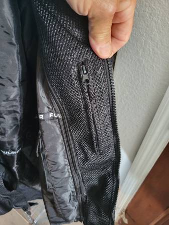 Fulmer padded (elbows, shoulders and spine) 2XL nylon reflective motorcycle jacket with zipout liner, inside and outside zipper pockets, warm and safe