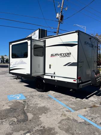 2022 FOREST RIVER SURVEYOR LEGEND MODEL # 19MBLE TRAVEL TRAILER !!!!!! ORIGINAL OWNER NON -SMOKER, BACK-UP CAMERA!!!! FOLD DOWN BED, LARGE SLIDE OUT!!!!! SOLAR SYSTEM!!!!!MICROWAVE!!!!! POWER PATIO AWNING!!!!BIG BATHROOM !!!! OUTSIDE COOKING GRILLE !!!!!POWER JACK!!!!!REFRIGERATOR!!!! LIKE NEW !!!!! IN EXCELLENT CONDITION!!!! CAN BE SEEN AT RVS R US 11315 66TH STREET LARGO FLA. CALL FOR MORE DETAILS 727-544-4562 DAY OR NIGHT CALL 727 215 -8484 ASK FOR GARY OR JOE.