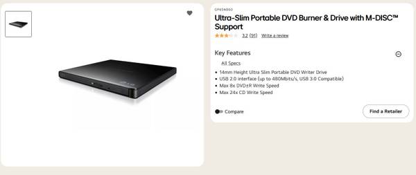 LG GP65NB60 Slim Portable DVD//M-Disc Burner Windows 10 or before ONLY Cyberlink Media Suite 10 - Cable- Padded Case- User manual Included $15 Cash