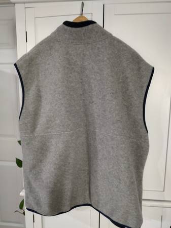 Men's Timberland fleece vest. Size 2XL. Grey with navy trim. Front zipper closure. Side slip-in pockets. 2 large inside pockets. Great condition.