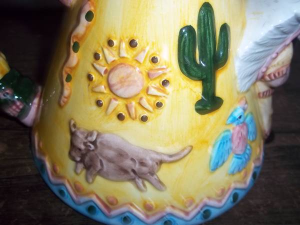 Teapot is depicting a Native American teepee.