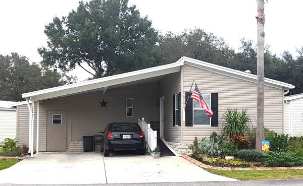 HIGHLY MOTIVATED SELLERS!! PRICED REDUCED TO SELL $85,000!! This home is Sun Homes at Southport Springs Golf Community nestled on a scenic golf course lot framed by majestic oak trees,. It's a beautifully upgraded PALM HARBOR home offers tranquility and style, with 2 bedrooms, 2 bathrooms, foyer, upgraded kitchen, formal dinning area and cozy Livingroom. So you would step into a ceramic-tiled foyer that leads to a renovated kitchen featuring white cabinetry, black hardware, and a cozy dinette with serene views. The formal dining room flows into a spacious living area and a screened-in porch—perfect for relaxing or entertaining. The primary suite boasts elegant wainscoting, a custom headboard wall, and stunning golf course views. Additional highlights include a welcoming guest bedroom, stylish guest bath, and a spacious double carport.