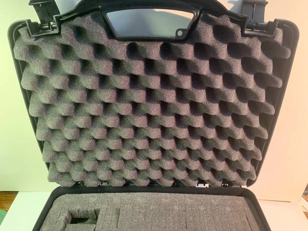 Molded plastic Plane case. Inside can be customized for pistols or cameras.