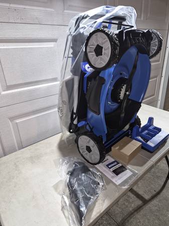 BRAND NEW, never used, Kobalt 2x24v = 48-Volt Self-Propelled Lawn Mower Kit with Two 5.0-Ah Batteries and a Charger. 3-in-1 Cutting modes, mulching, bagging, or side discharge. This lawn mower features a steel deck, a self-propelled rear-wheel-drive system with variable speed control, a telescopic folding handle for vertical storage, 6-position deck height adjustment, and a brushless motor with push button start. This kit includes everything you need to get started and everything is brand new. Includes 2 batteries, a charger, a rear bagger and frame, a mulch plug, a side discharge chute, and user manuals. Retails for $569 +tax. Save $$ here!!